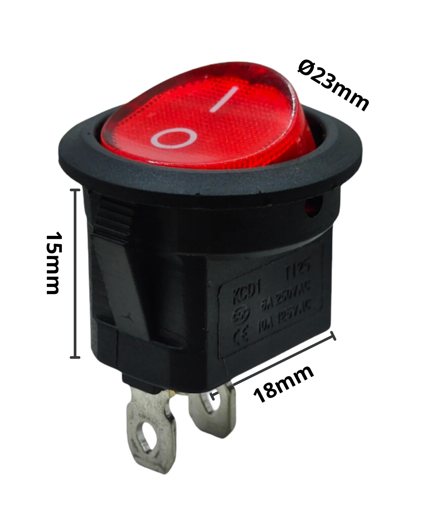 INTERRUPTOR BALANCIN REDONDO LUZ PILOTO 3 PIN 2 POSICIONES
