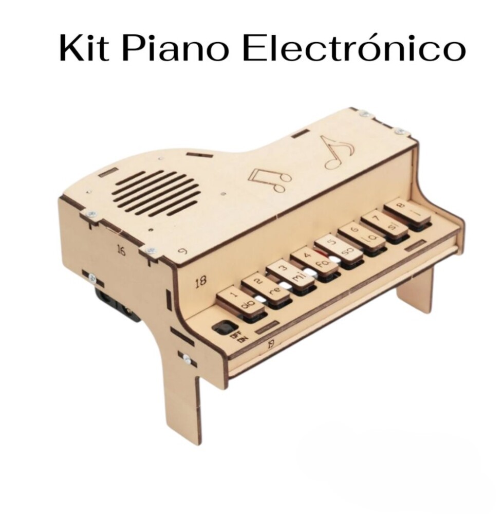 Kit de proyecto estudiantil para ensamblar un piano electrónico que pone a prueba tus capacidades de electrónica básica y apoya al desarrollo del aprendizaje en el mundo de la robótica y la automatización.