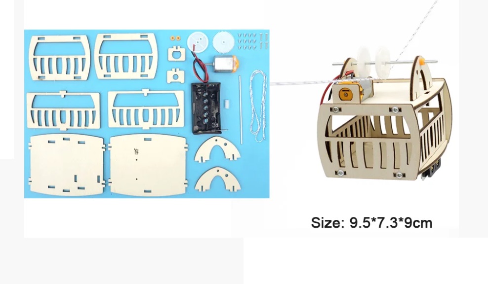 Kit de proyecto estudiantil para ensamblar un teleférico panorámico que pone a prueba tus capacidades de electrónica básica y apoya al desarrollo del aprendizaje en el mundo de la robótica y la automatización.