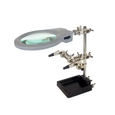 TERCERA MANO CON SOPORTE, PARA CAUTIN, PINZAS, LUPA ILUMINADA GRANDE ZD-10M